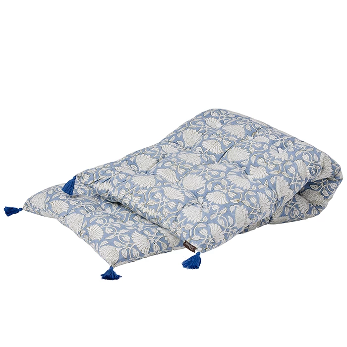 Soft, thick seat cushion for armchairs or as a bench cover by Bungalow from Denmark. The seat cushion with a flower pattern in green has a color-matching tassel at each end. Size: 100x50x5 Color: green/pink Care instructions: cleaning is recommended, avoid direct sunlight Material: 100% cotton, filling: 100% polyester