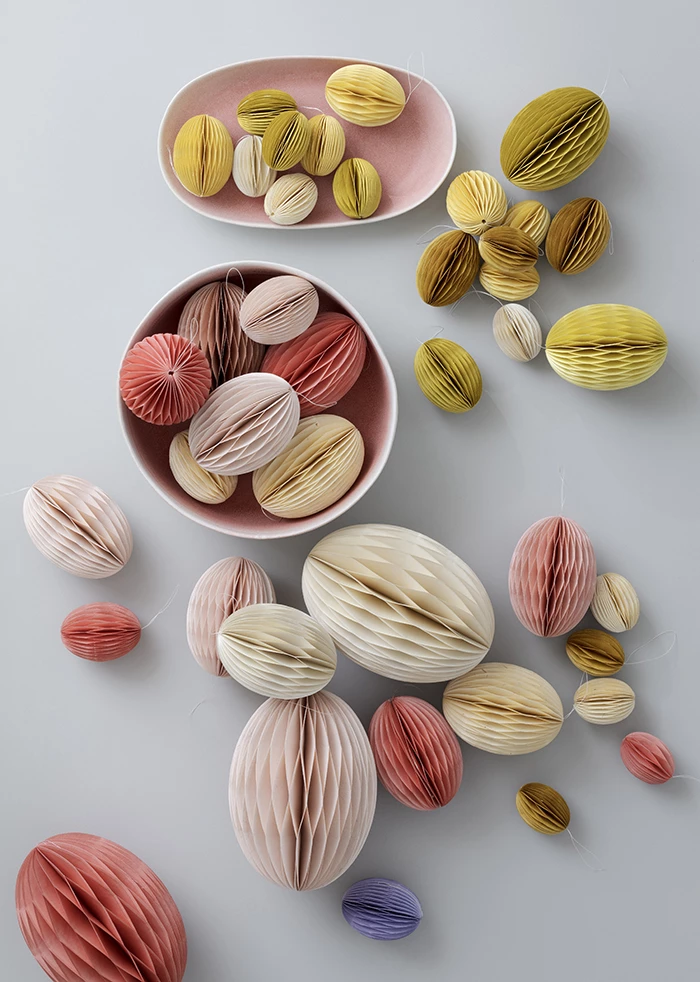 Beautiful Easter eggs made of handmade paper to open (held magnetically) in cream tone. With hanger 2 pieces Gr. 12 centimeters.