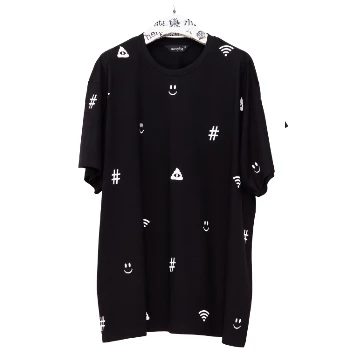 The “Internet” Bigshirt in black with white print. Worn as a T-Shirt dress. Allover foil print, printed at our starstyling studios in Berlin. Get connected! 100% Cotton.