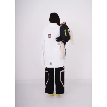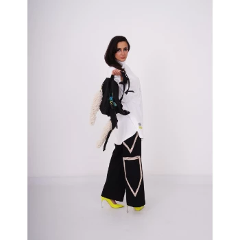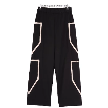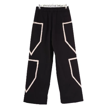Four patch pockets in a house like shape with hand painted pocket outline.