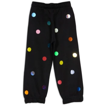 The Kids “Points” Jogger in Black. Unisex kids joggers with many multicolored points on the front and backside. Printed in our Berlin starstyling studios. 80%Cotton 20%Polyester.