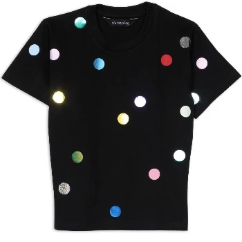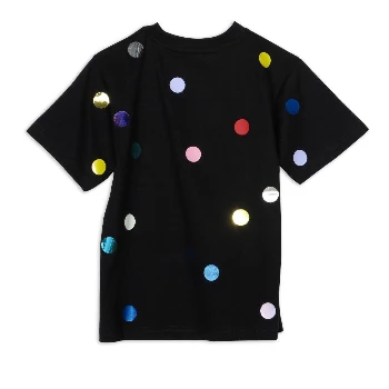 The Kids “Points” T-Shirt in Black. Unisex kids t-shirt with multicolored points allover. Handmade unique item, printed in our Berlin starstyling studios. 100% Cotton