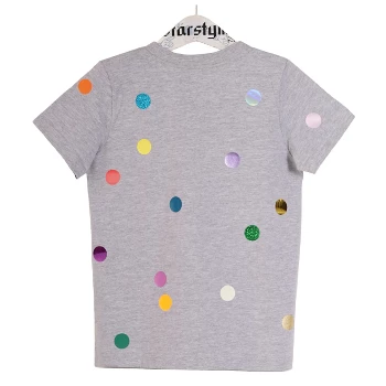The Kids “Points” T-Shirt in Grey. Unisex kids T-shirt with multicolored points allover. Handmade unique items, printed in the Berlin starstyling studios. 100% Cotton.