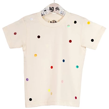 Unisex kids T-Shirt with small points in different colors on the front and backside.