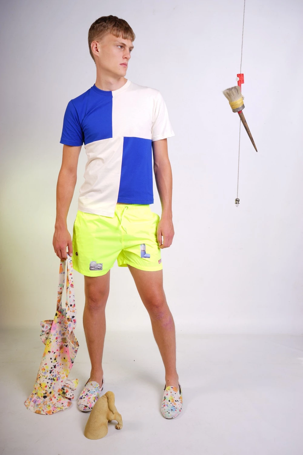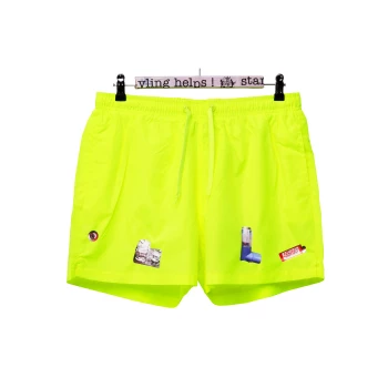 The “Things” Shorts in Neon Yellow. Elastic waistband with strap closure, two pockets in the side seams and pocket with velcro closure on the back. High resolution foil print on front & back. 100% Polyester.